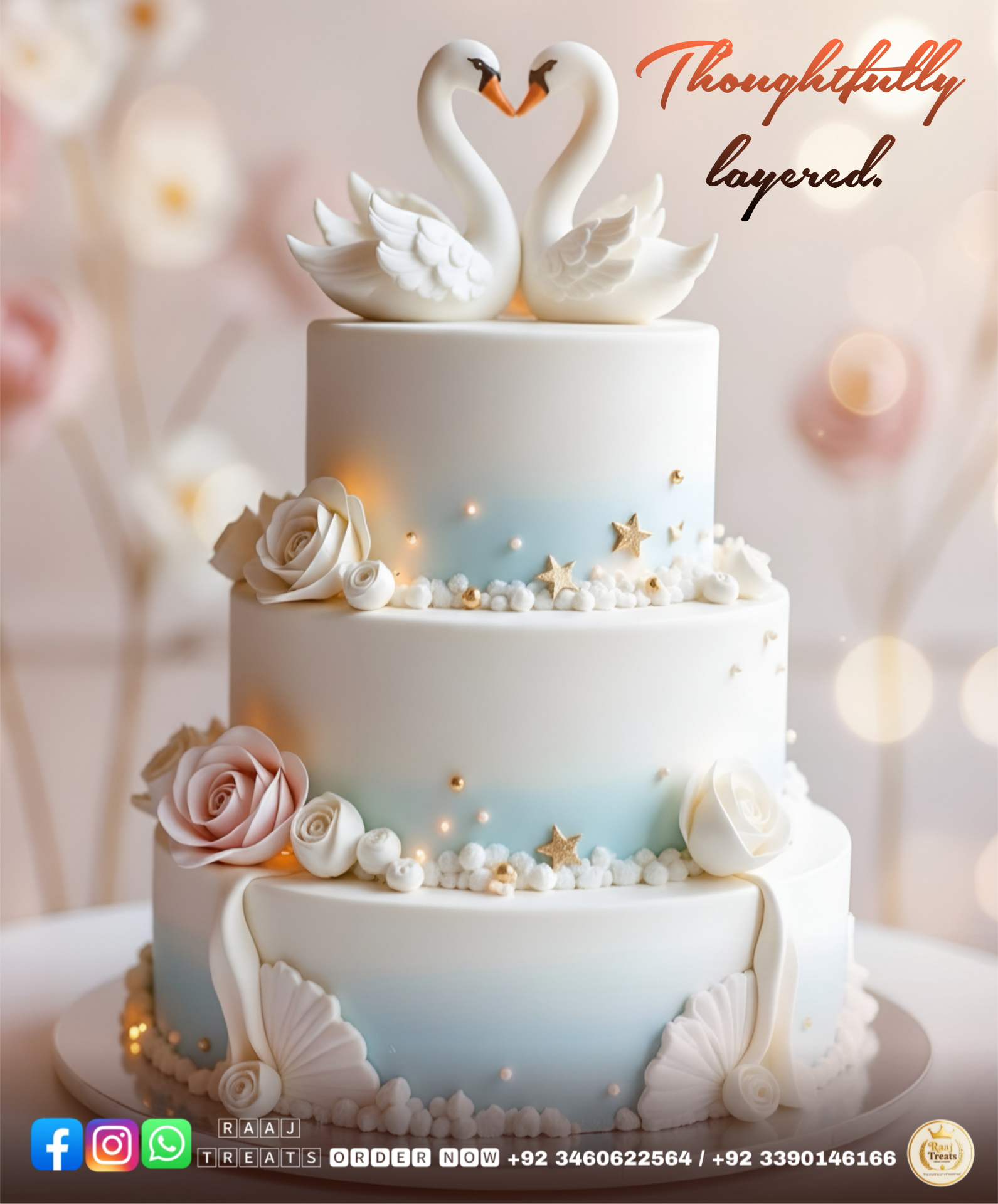 Surprise your loved ones with a stunning multi-tier cake, perfectly crafted to make your celebration unforgettable.